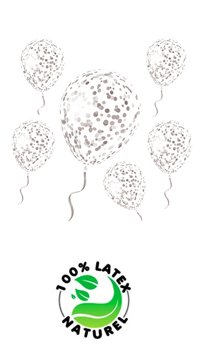 BALLONS AVEC CONFETTIS ARGENT, LOT DE 6